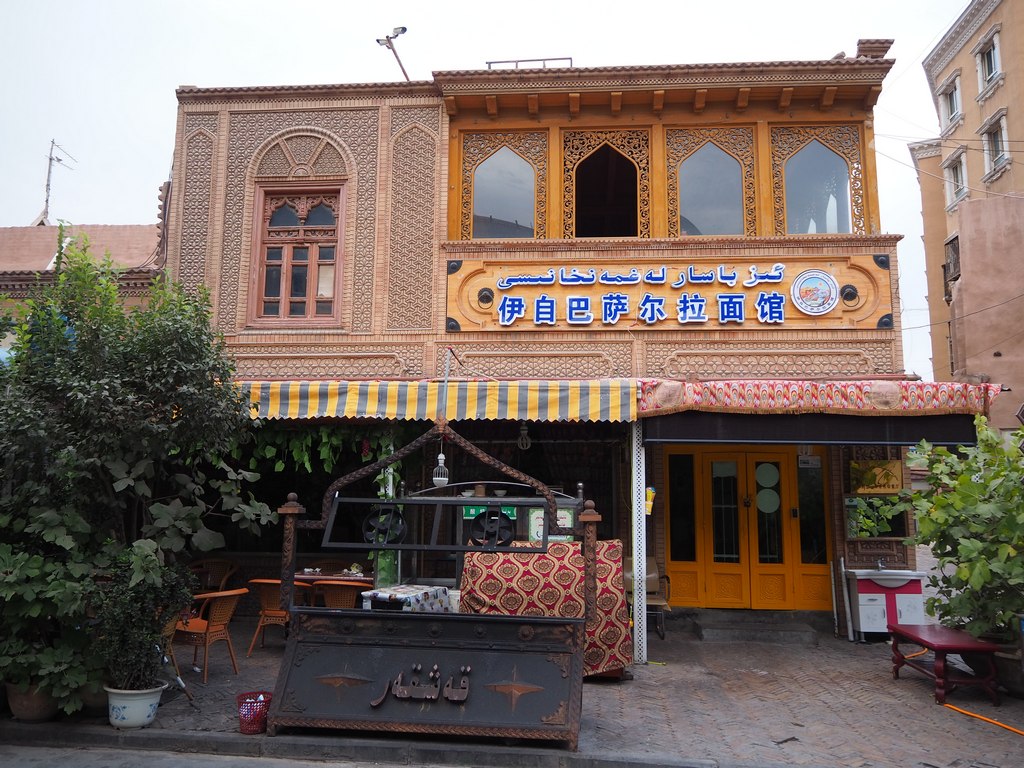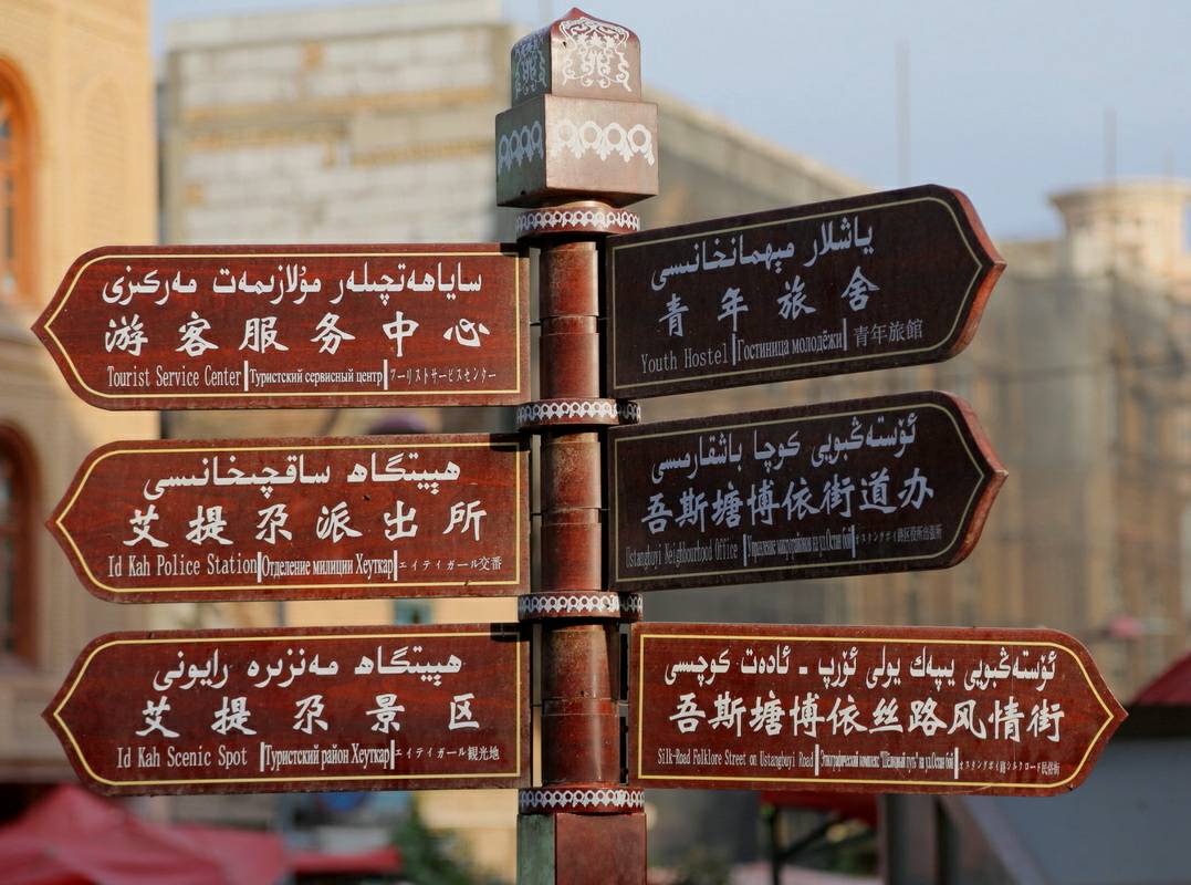 В Синьцзяне часто можно увидеть вывески, где китайские иероглифы соседствуют с арабской графикой.