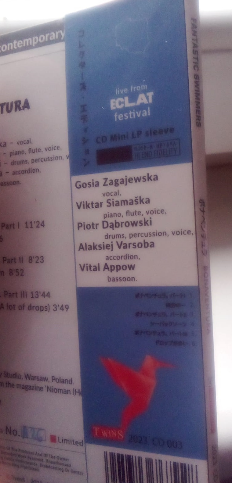 Вот, например, возьмём этот диск, вроде «просто» композиции белорусско-польских джазменов-авангардистов, но выпущен компакт в Японии, поэтому в обязательном порядке обзавёлся «пояском» и вид сразу какой!